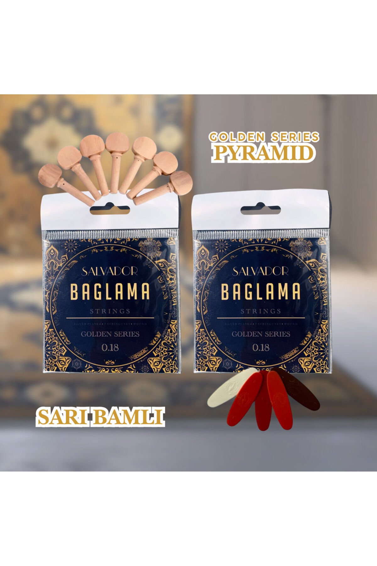 2 TAKIM SARI BAMLI GOLDEN SERIES 0.18 BAĞLAMA TELİ ( Mızrap Tezene Seti Burgu Kulağı Tam Set)
