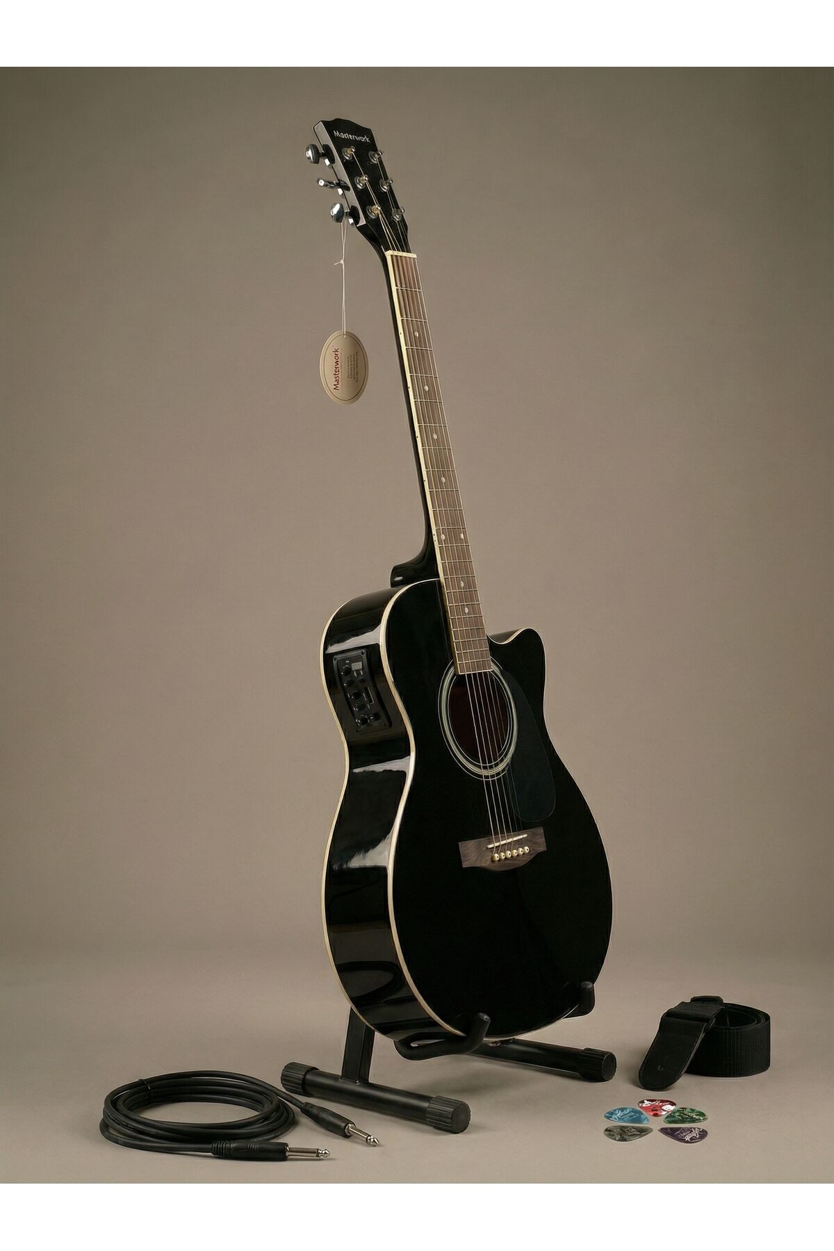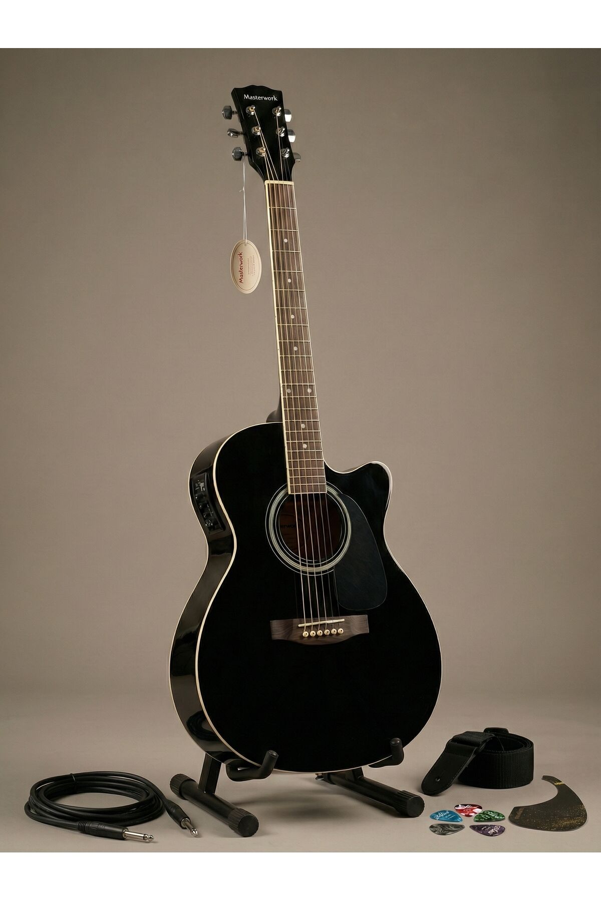 4000CE-BK Siyah Elektro Akustik Gitar Seti (Pena, Askılık, Pickguard, Kablo)
