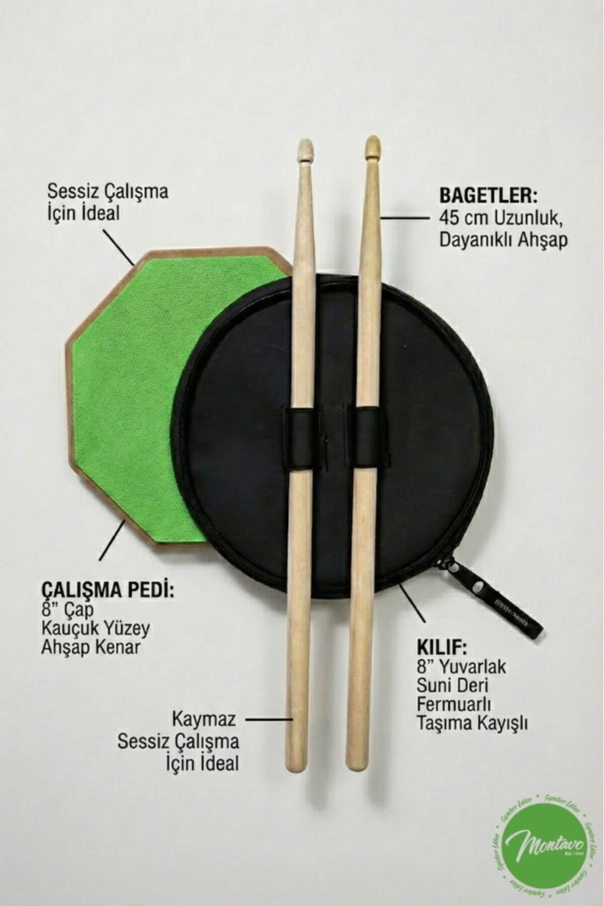 Bateri Davul Drum Pratik Çalışma Pedi Pad Yeşil ( 1 Çift Baget + Kılıf Hediye )