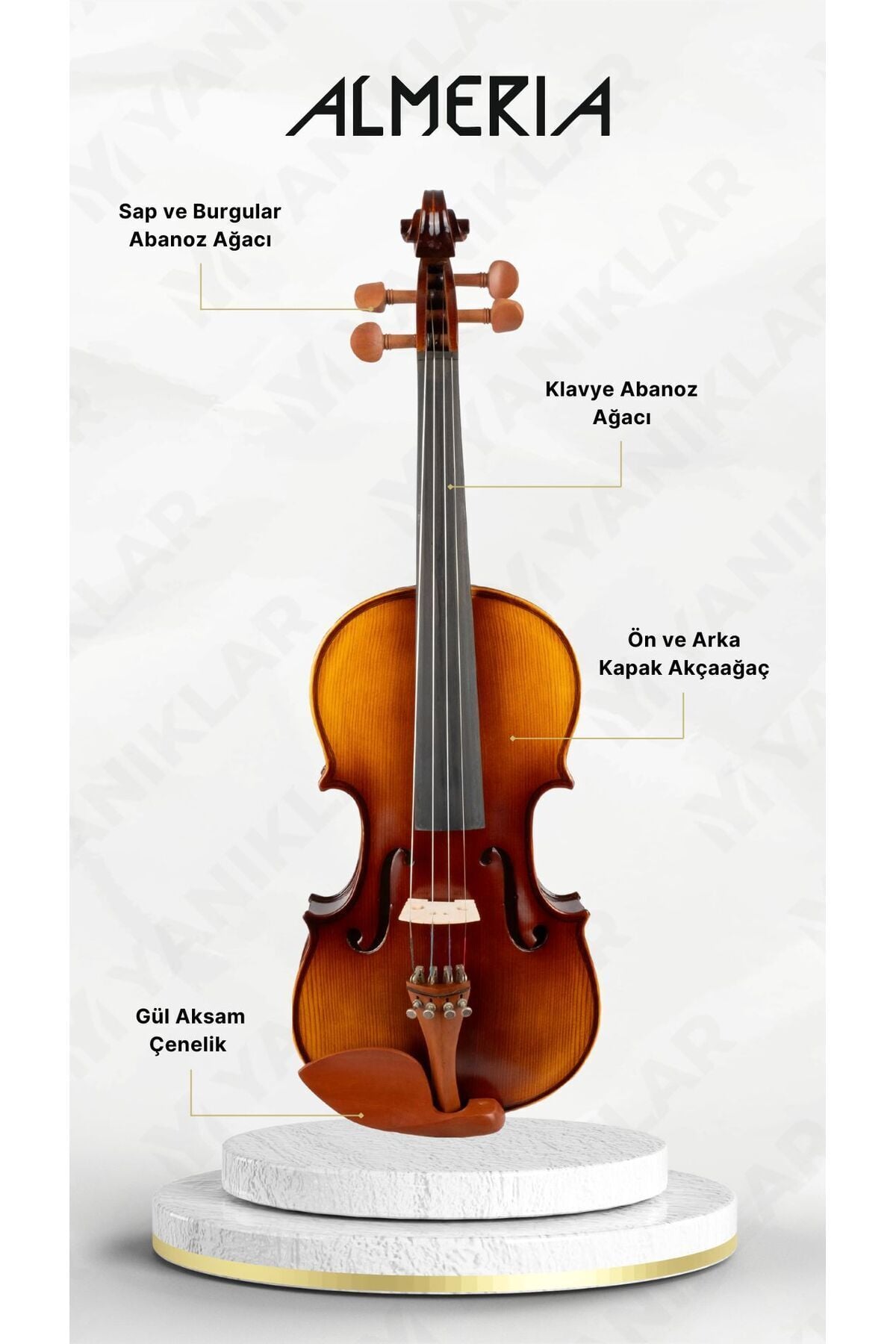 El Yapımı Gül Aksamlı 4/4 Keman (Taşıma Çantası, Reçine ,Yay Dahil)