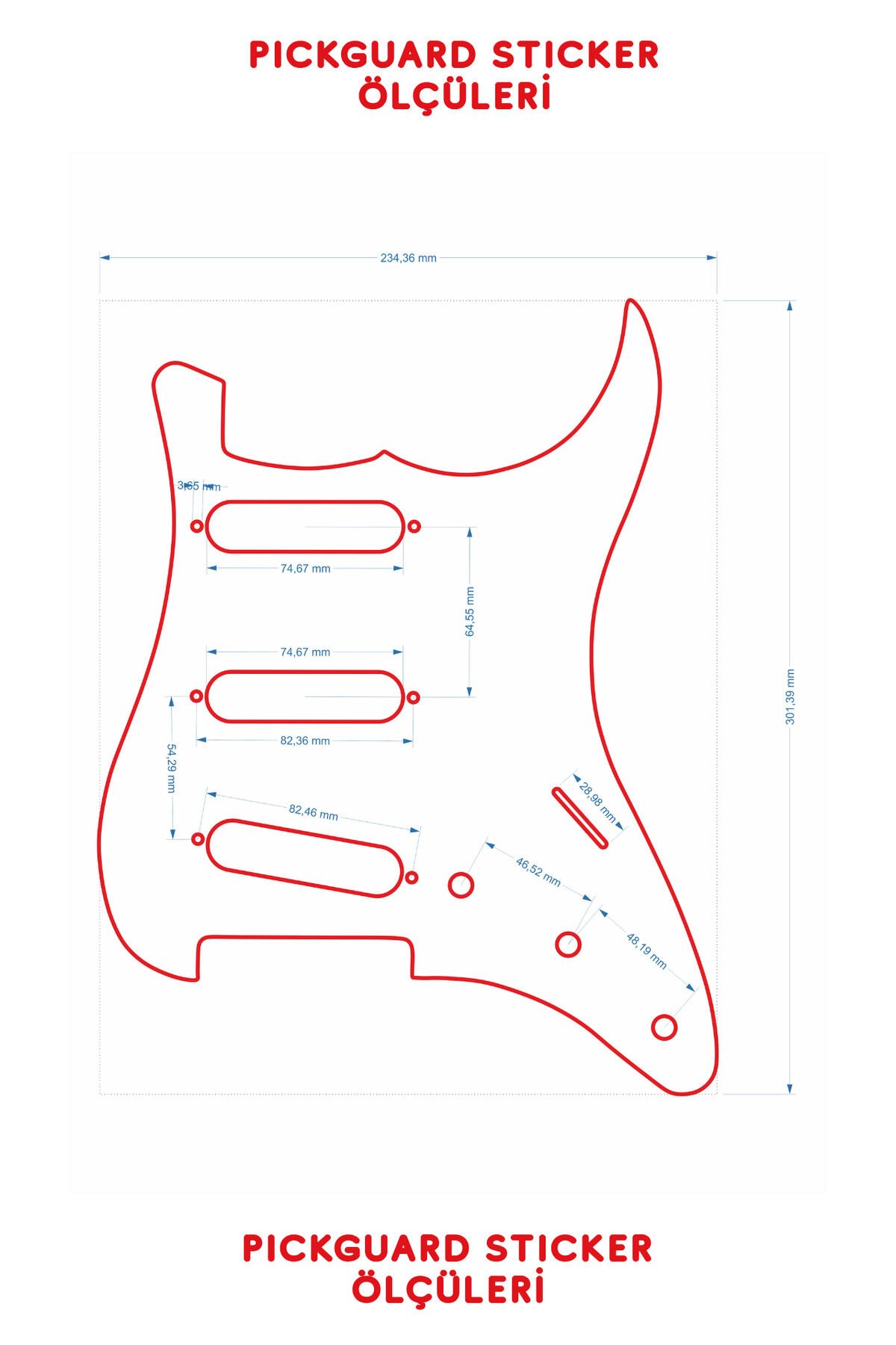 Pickguard Sticker - Strat Kasa Elektro Gitar SSS