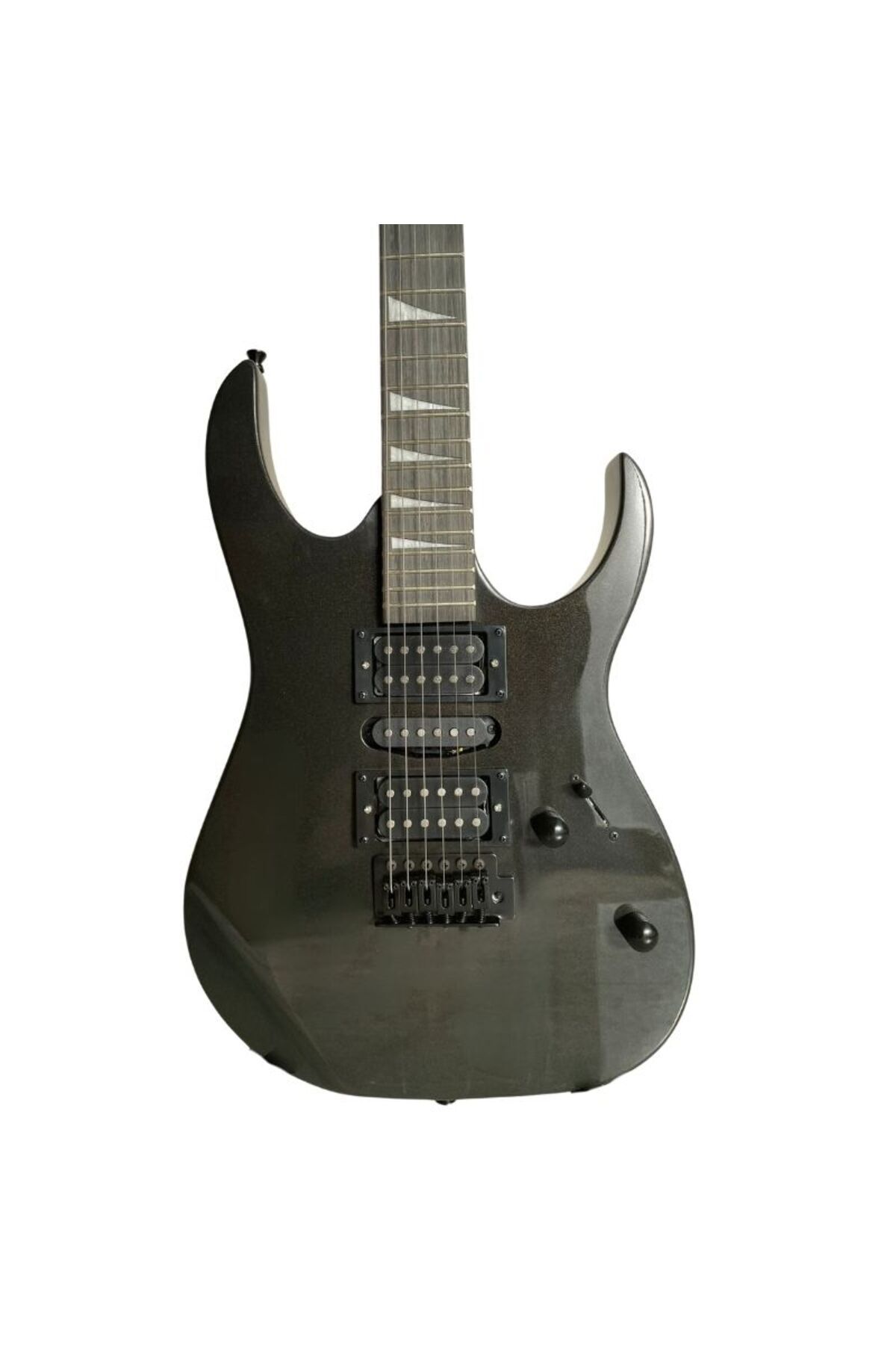 Body: Poplar Bolt-on neck: maple Fingerboard: Amaranth Fingerboard inlays: White offset pearl Neck profile: Slim ABS nut 24 Jumbo frets Pickups:2 x Ceramic Humbuckers 1 x Ceramic single Master volume and master tone controls 5-Way switch six point Bridge Sealed machine heads Black hardware