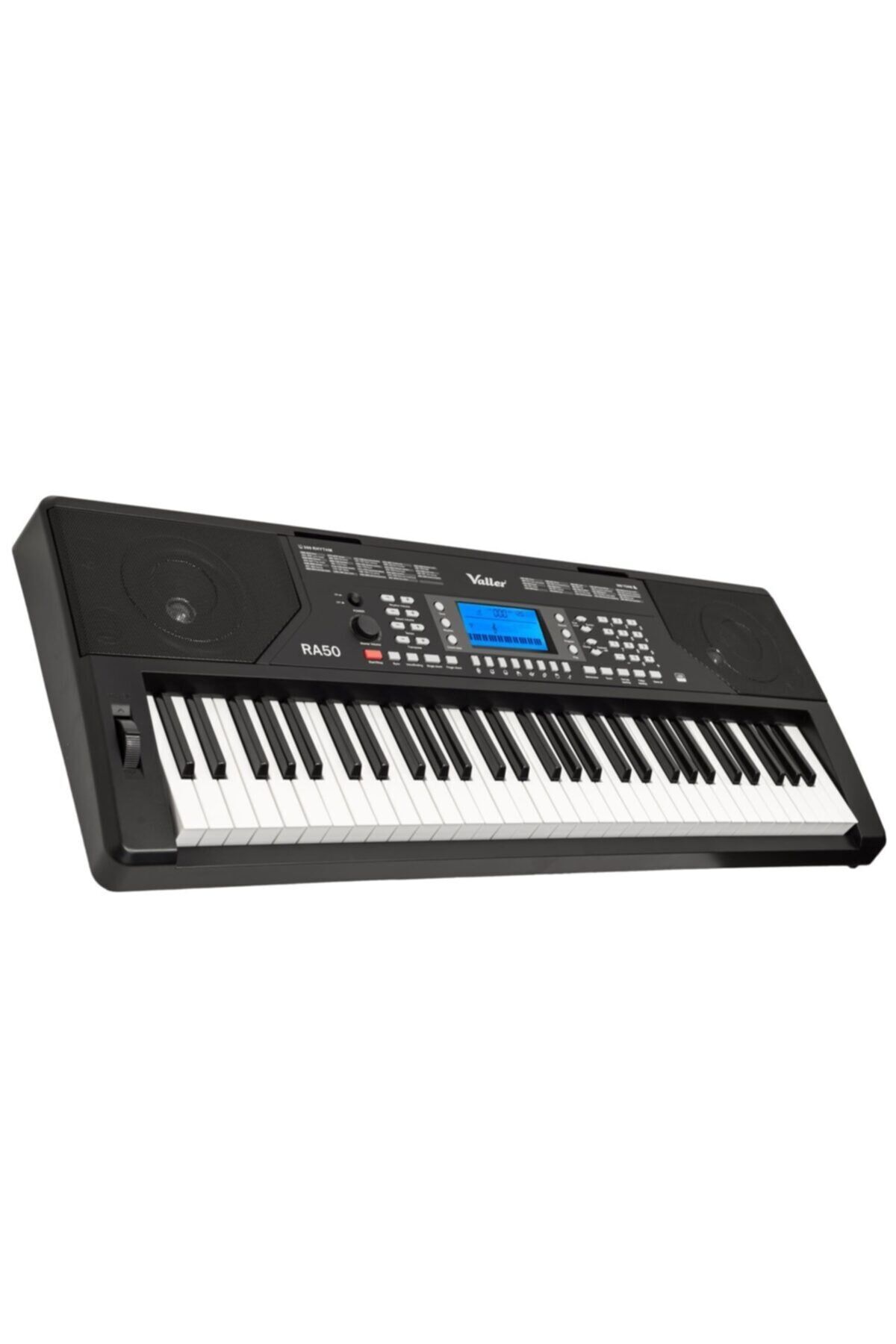 Valler RA50 61 Tuş 5 Oktav Tuş Hassasiyetli Org 61 Adet Piyano tipi, tuş hassasiyetli klavye; 5 oktav; Işıklı LCD Gösterge; 300 ses; 300 ritm; 40 Şarkı demosu; Çift Ses; Sustain; Klavye Bölebilme; Transpoze; Metronom; Pitch Bend; Şarkı Kaydı; 8 Adet perküsyon butonu; Akıllı Ders Öğrenme Modu; DC9V Adaptör girişi; USB MIDI; Kulaklık girişi; Mikrofon girişi; 5.14Kg; Adaptör, Nota standı ve Kullanım kılavuzu ile verilir.;