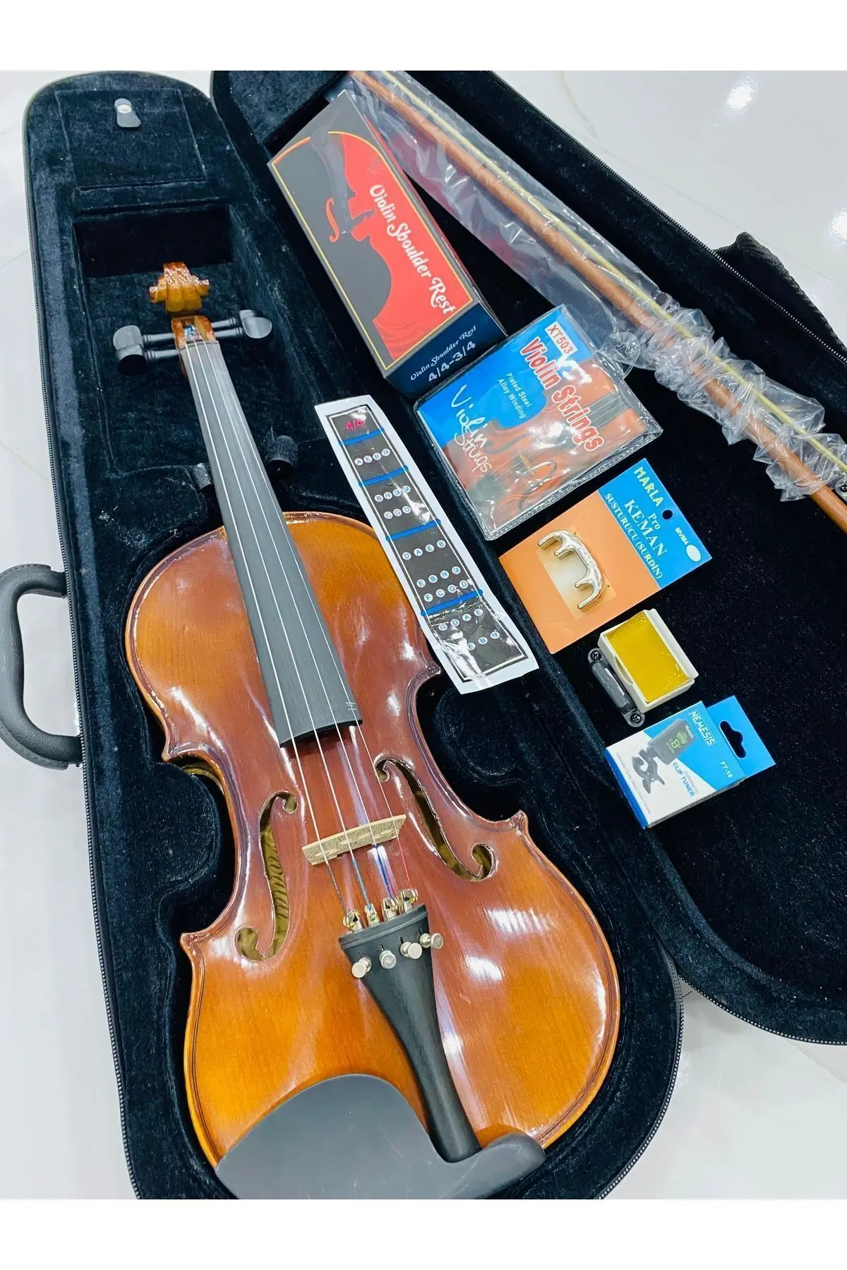 Parlak 4/4 keman tasarımı, klasik müzik performanslarınızda mükemmel bir ses kalitesi sağlar; - Full set olarak sunulan bu keman, ihtiyacınız olan tüm parçalarla birlikte gelir ve ekstra masraf yapmanıza gerek kalmaz;
